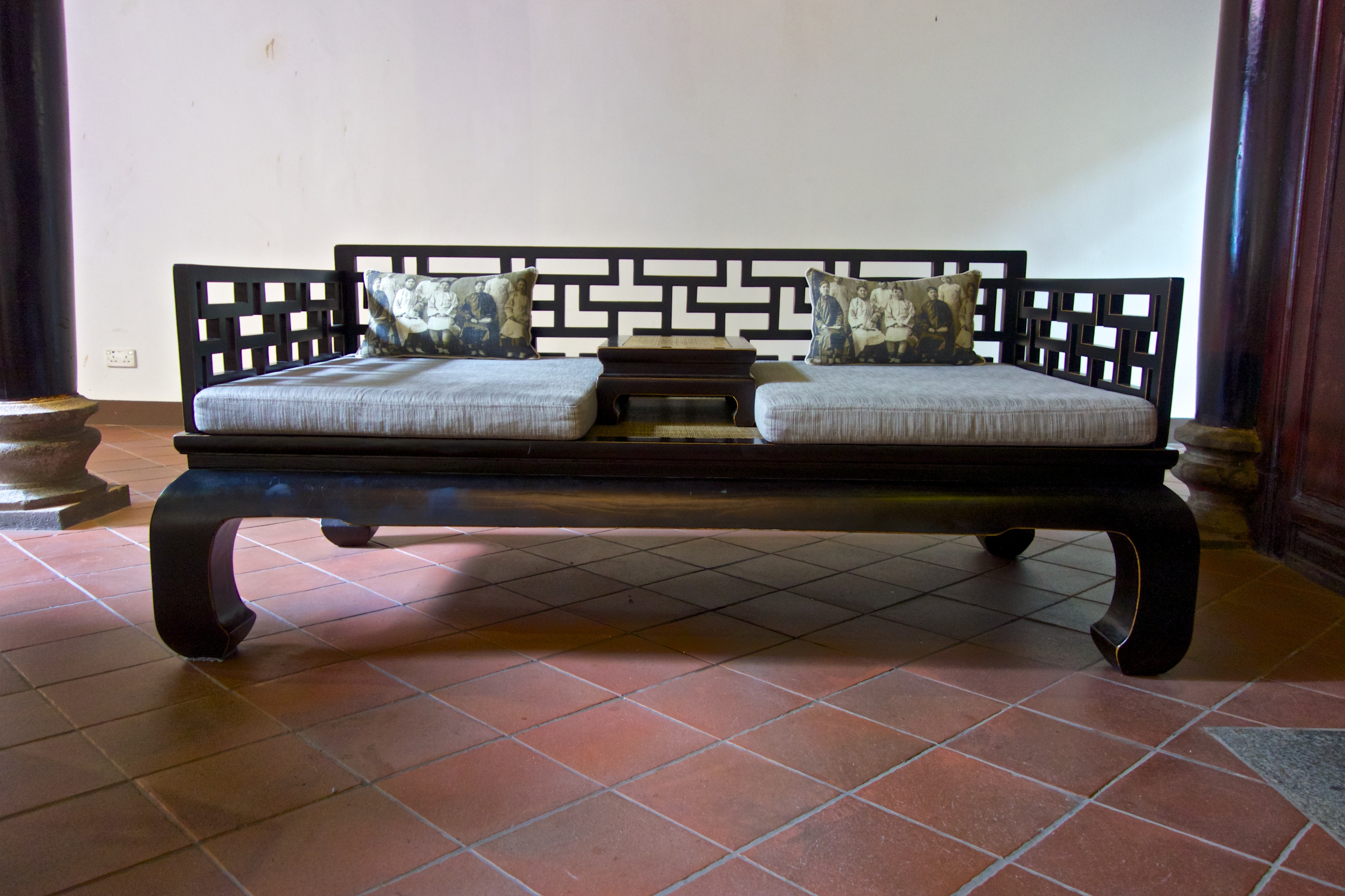 The Amoy Hotel is in a converted temple in a street full of character with beautiful old temples and buildings. The entrance has an open tiled roof and is filled with antiques – the Fuk Tai Chi Museum.