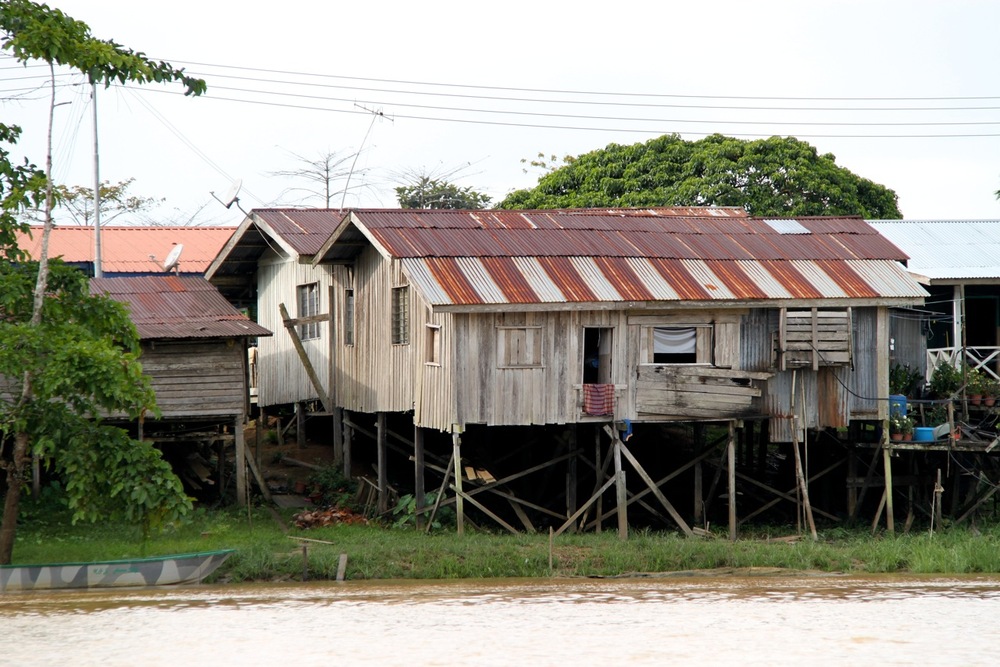 There are homes dotted along the edge of the river.