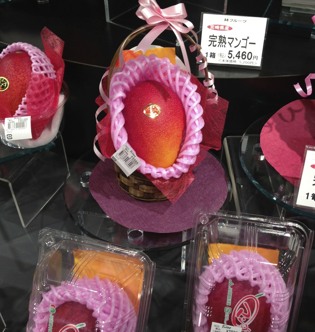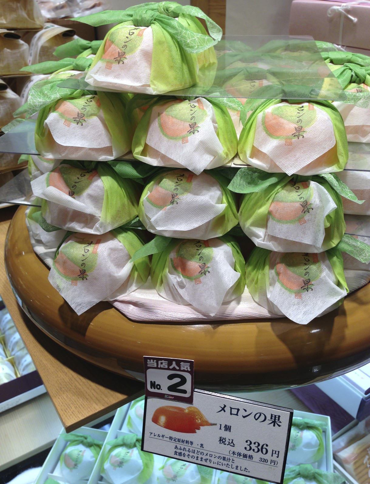 We stopped to admire food everywhere we went in Tokyo – because it looked so different from what we normally see, and the packaging and wrapping is done to perfection, with great care and pride. Here are some of my favourite photos and note the cost of a mango and a rockmelon in special packaging! Around AU$84 for the rockmelon and AU$54 for the mango.