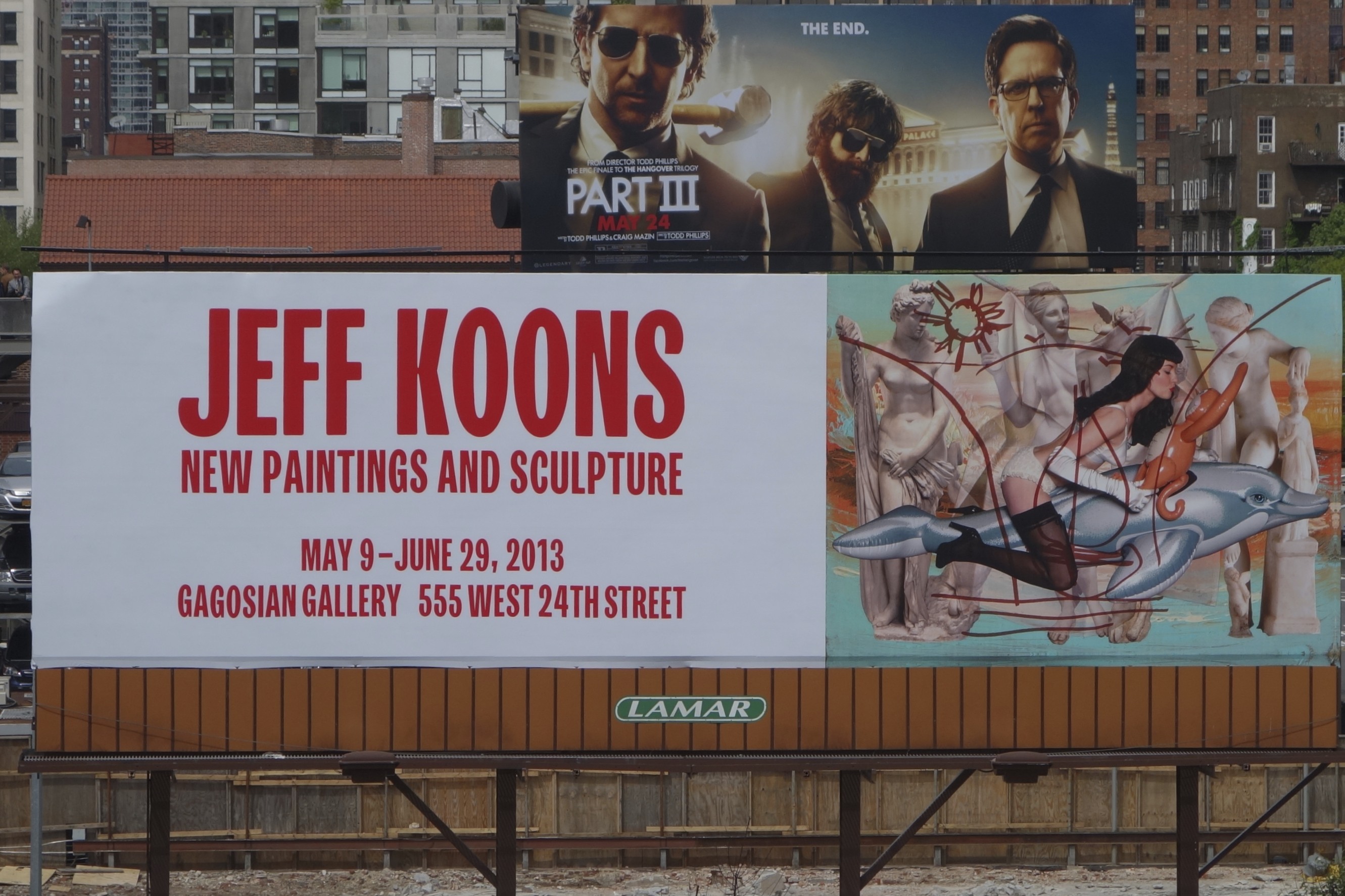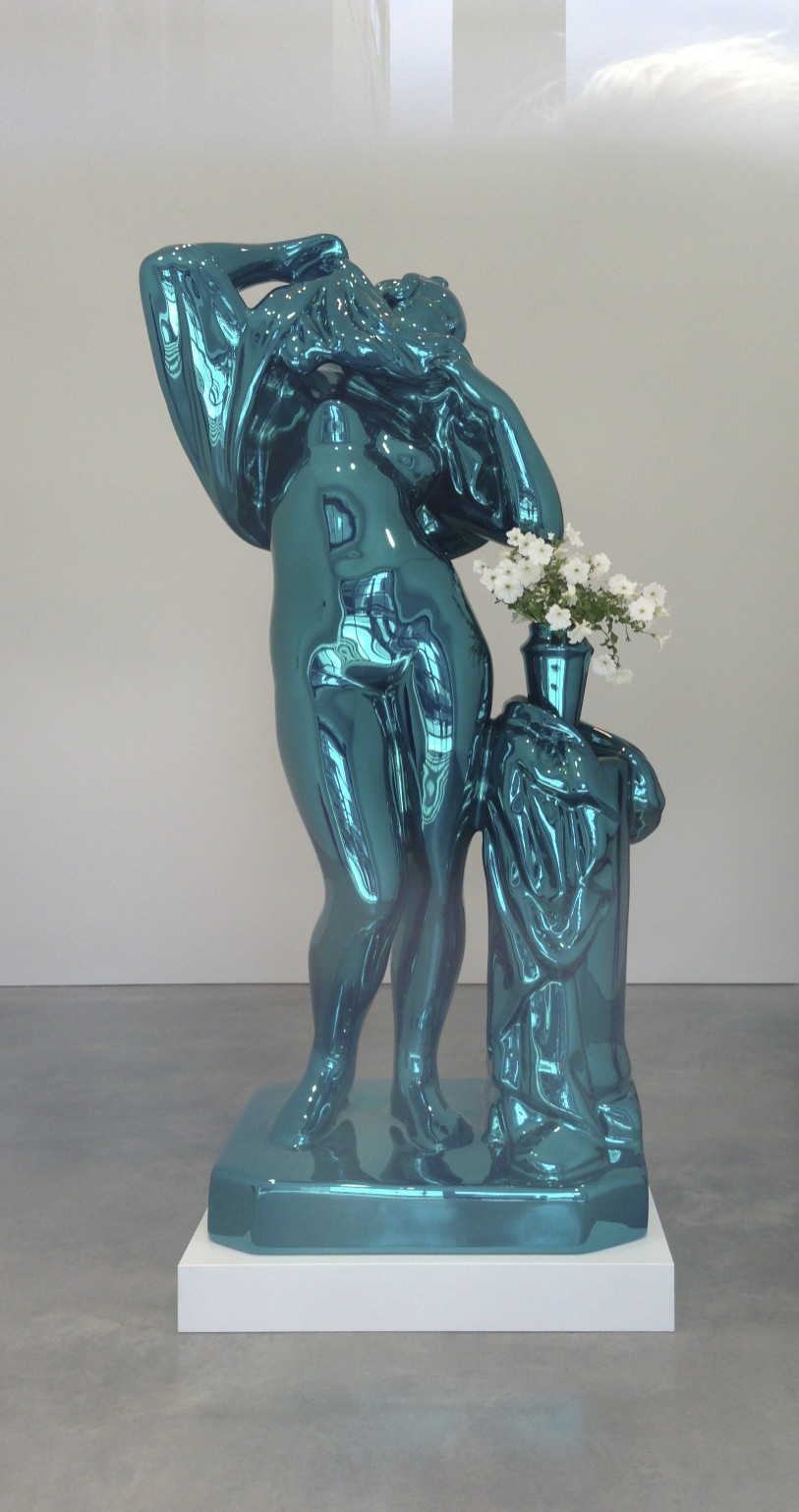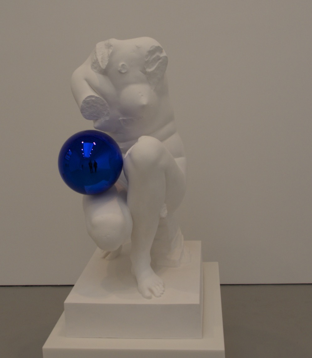 Jeff Koons, reportedly the highest paid artist in the USA recently had not one but two exhibitions running at the same time in New York, at probably the city’s most powerful galleries. Gargosian and its rival David Zwirner both opened in the same week, to what one curator called an art world battle royale! The trifecta for Koons will be a full retrospective opening at the Whitney Museum in 2014. In these two concurrent shows Koons is trying to place himself in art history ,quite literally, by placing art history in his work – dragging classic statues onto canvas or casting them in plaster. The Gazing Ball show at Zwirner Gallery is his first solo exhibition of new work in a decade. It was very exciting to be in New York at this time and to see this controversial artist with so much work.