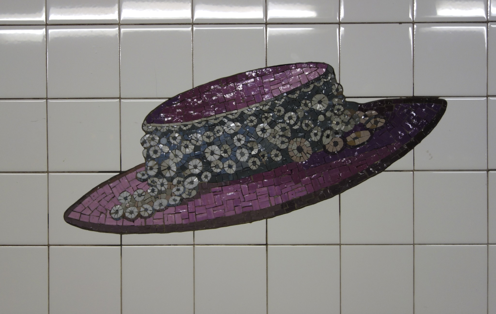 Subway trains arrive and depart too quickly for my liking because I love to look at the art. 23rd Street has mosaic tiles depicting headwear on its walls, done by artist Keith Godard in homage to the famous men and women who many years ago would have frequented this area around Broadway. It’s fun trying to pick a favourite.