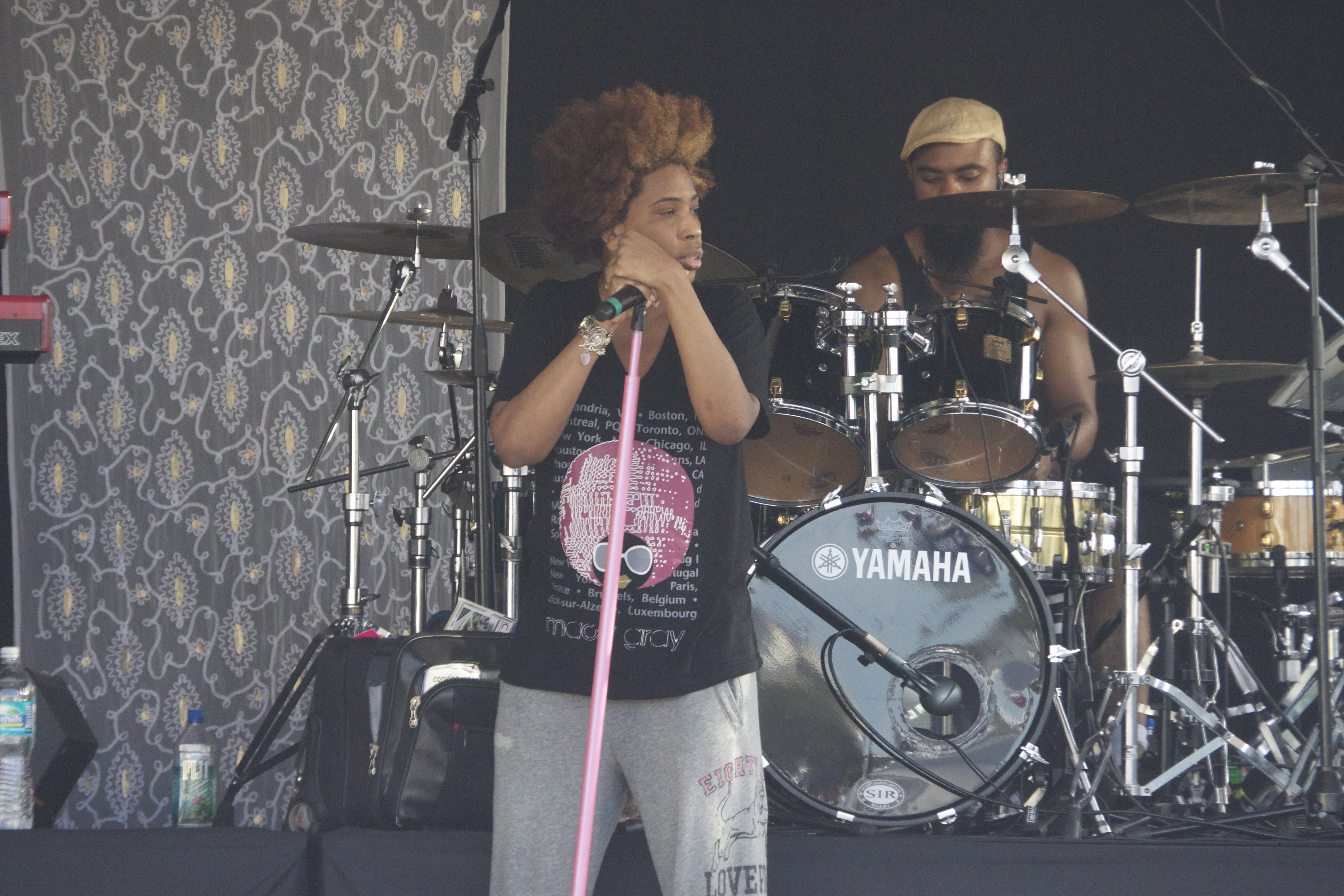 Macy Gray doing a sound check on the dock.