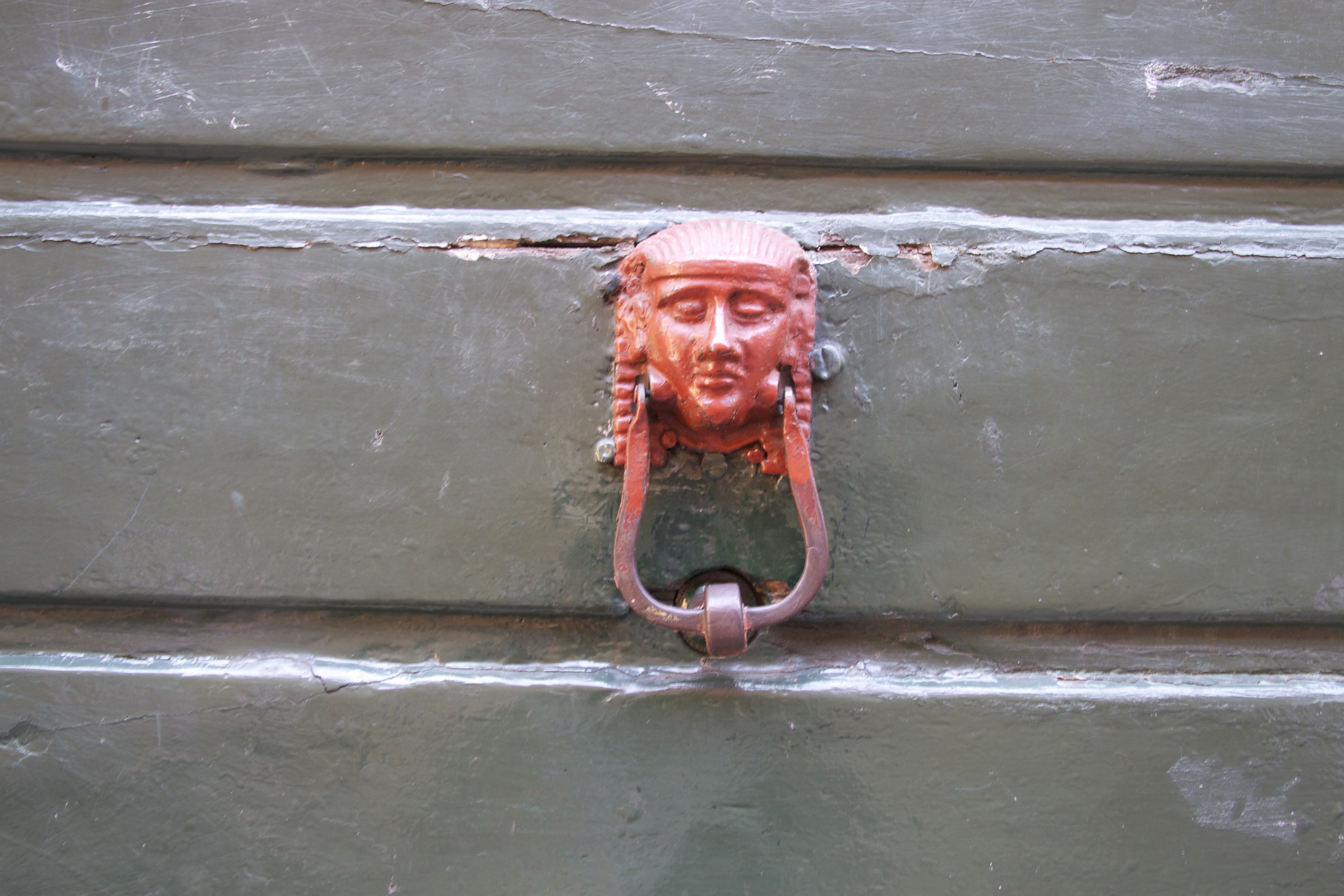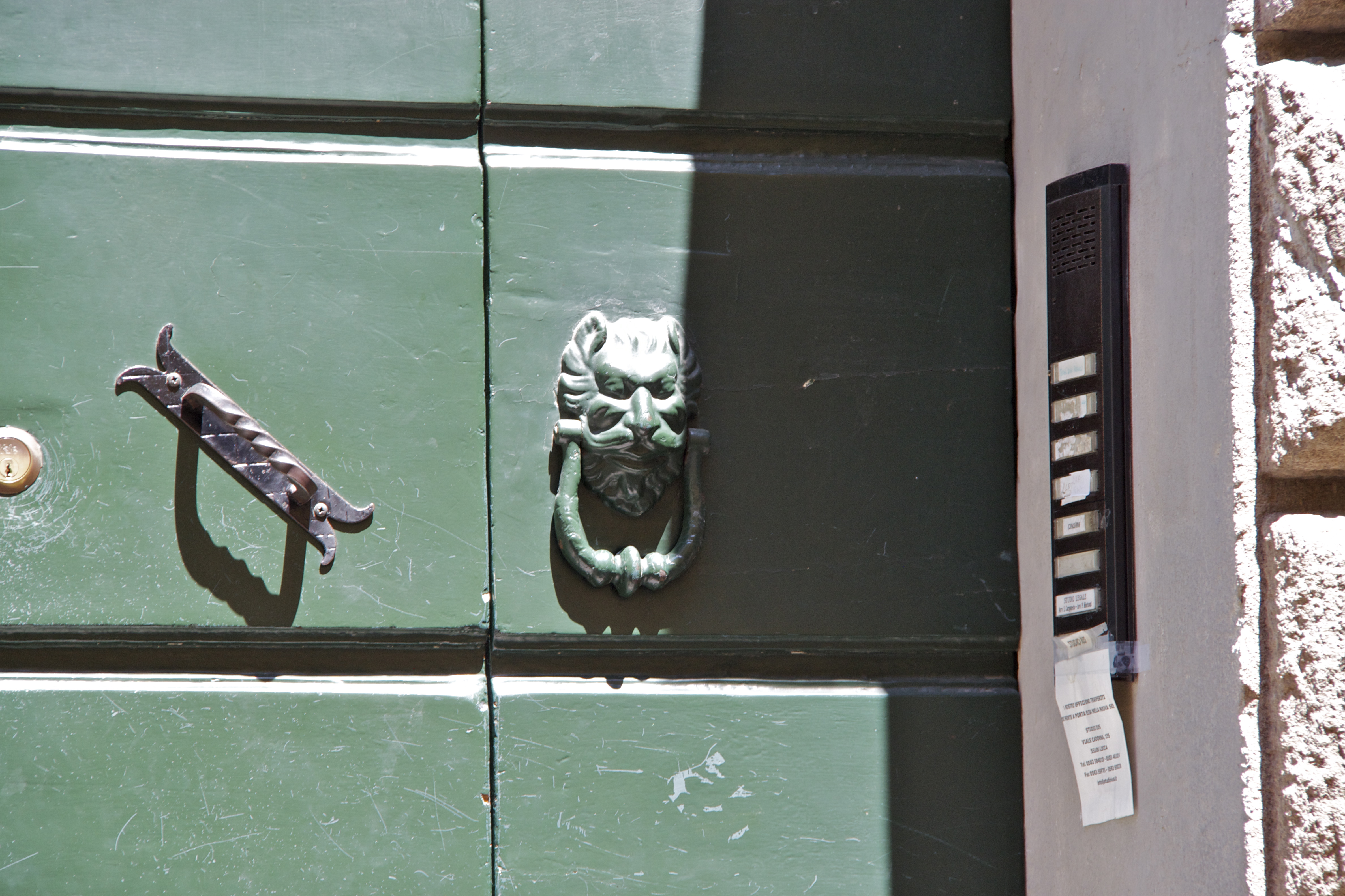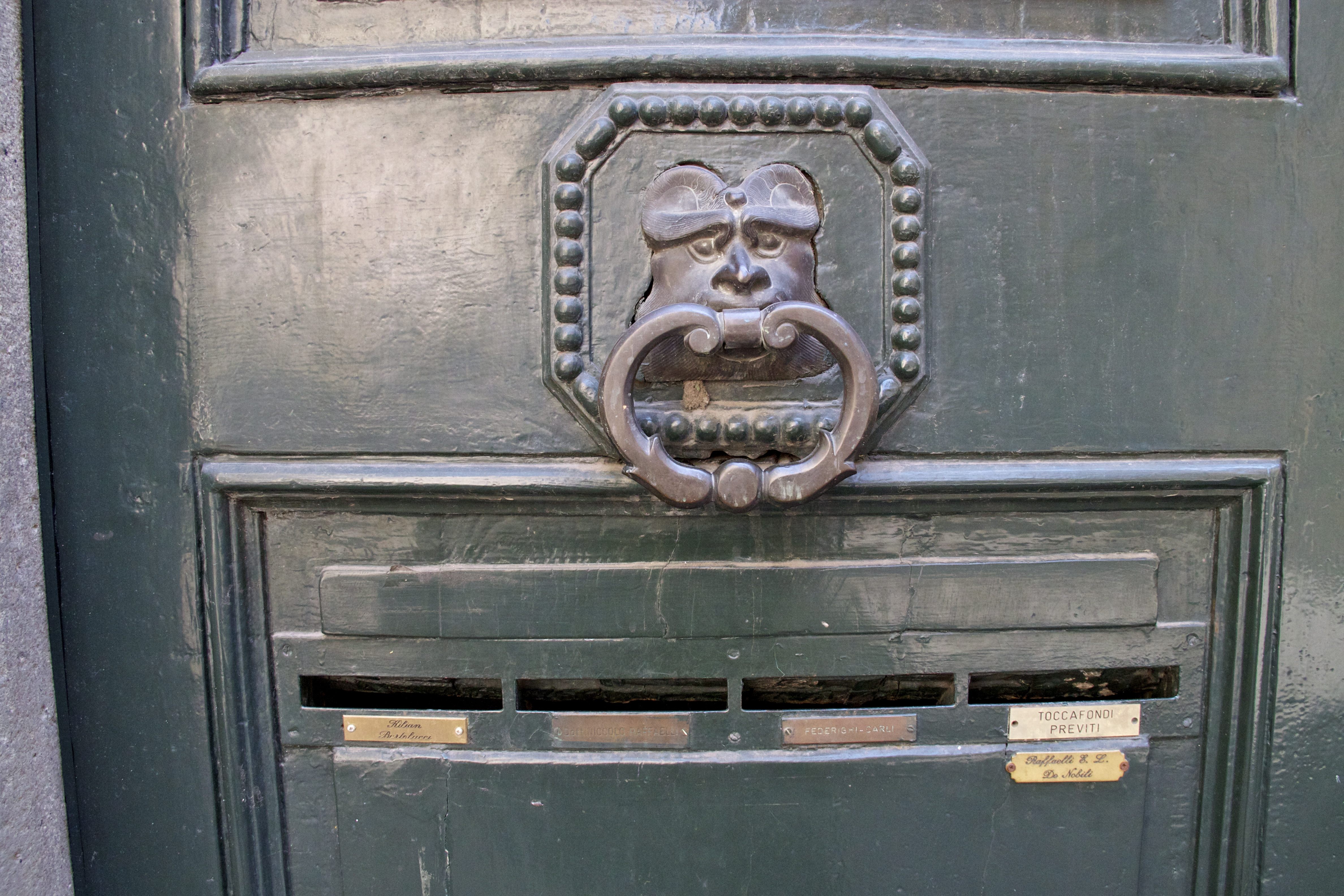 Lucca in Tuscany Italy is a very popular town dating back to Etruscan times. With its fortress walls surrounding the old city, and its car free streets, you can wander from historical monument to churches of great beauty, and on the way, admire the walls and door of the old buildings.Here are just some of the door knobs and knockers that took my eye.