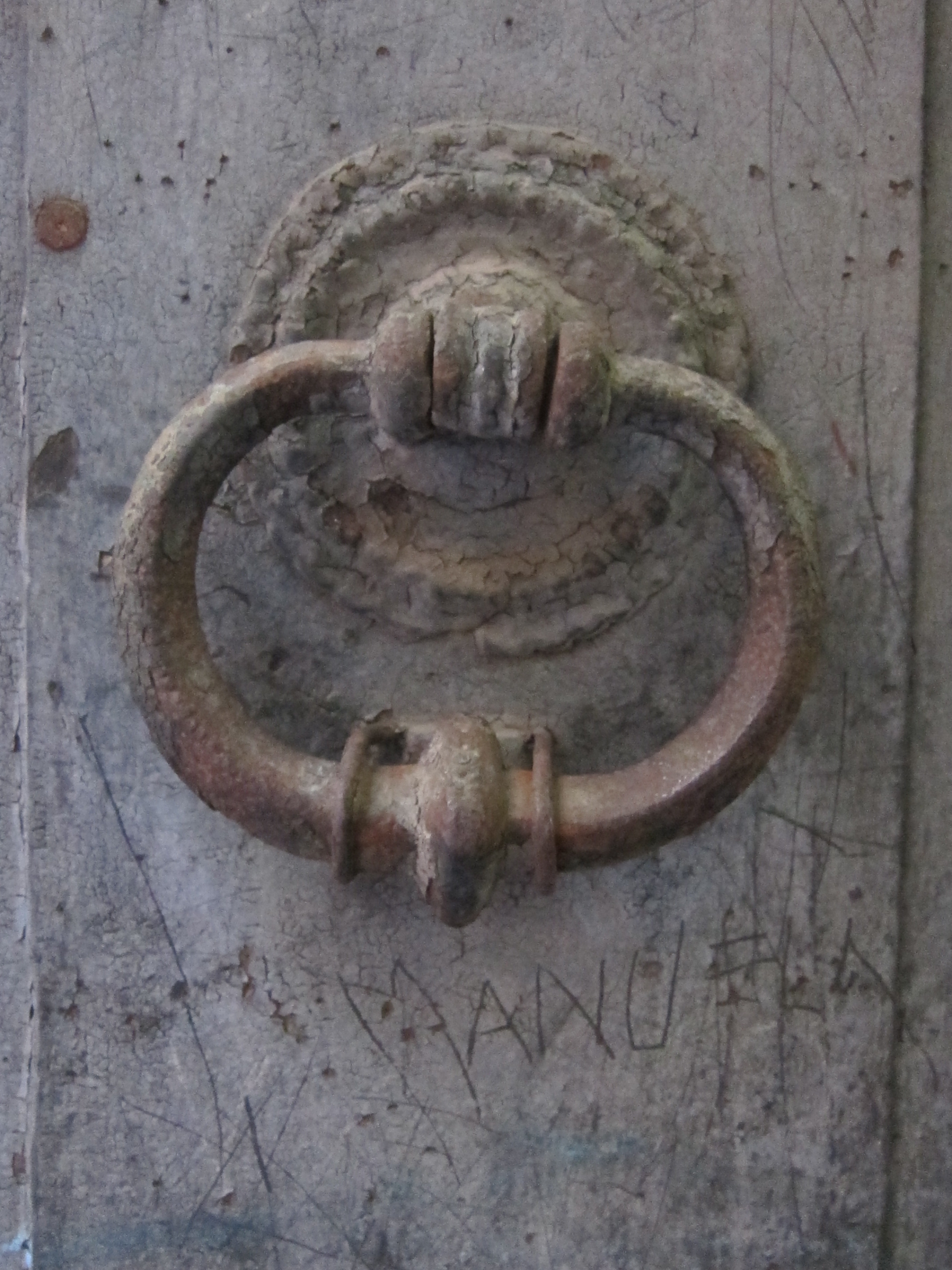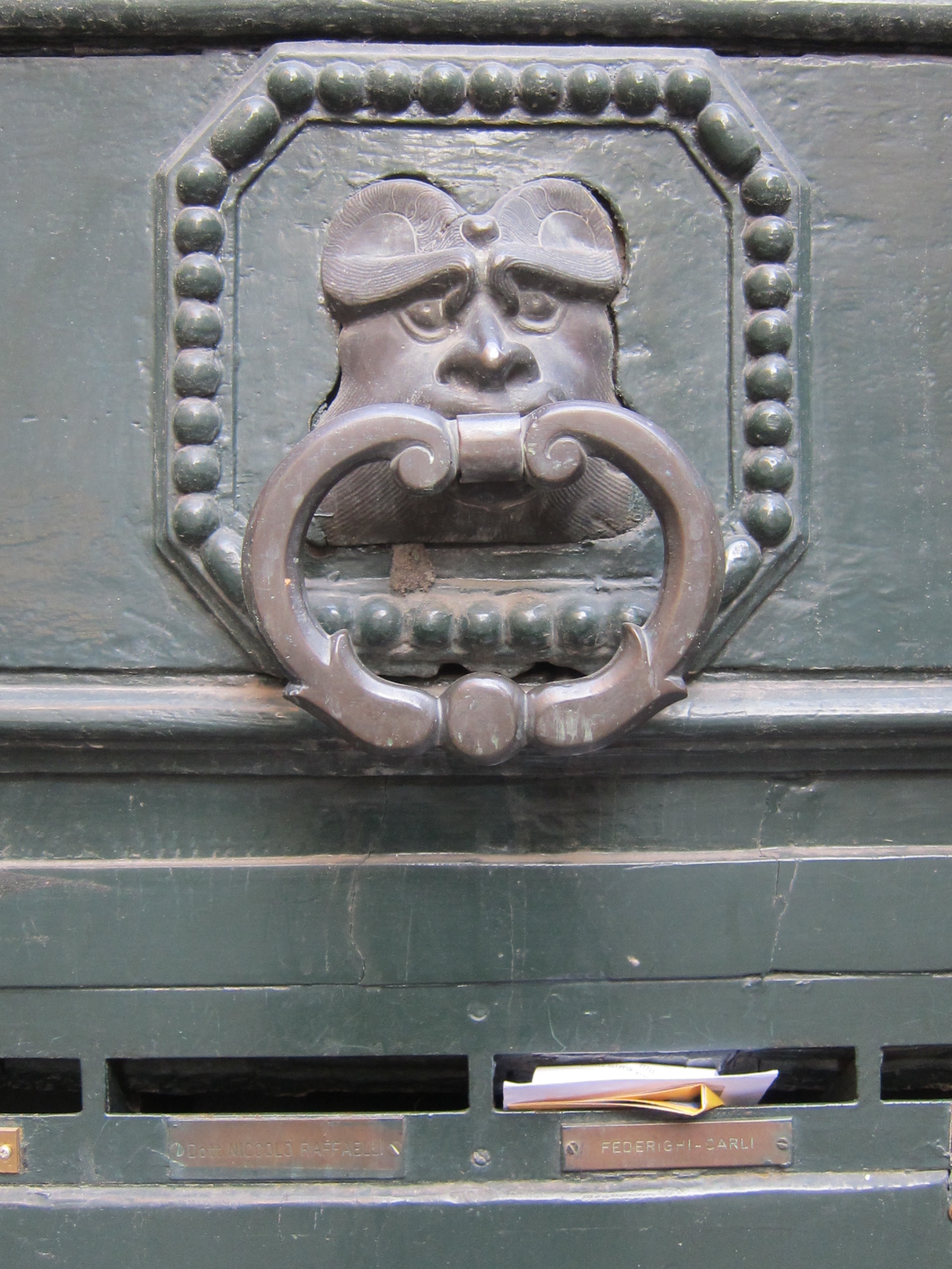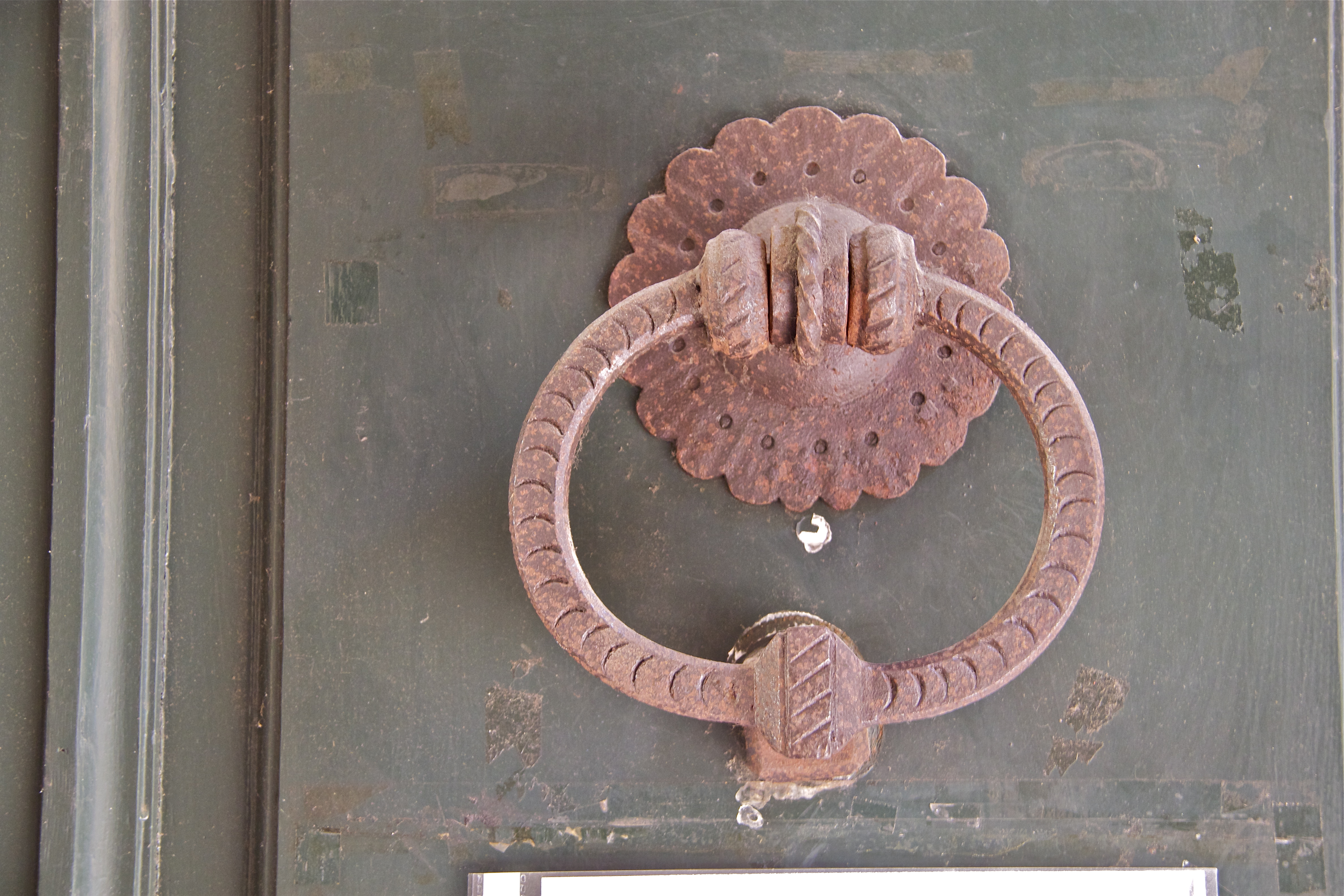 Lucca in Tuscany Italy is a very popular town dating back to Etruscan times. With its fortress walls surrounding the old city, and its car free streets, you can wander from historical monument to churches of great beauty, and on the way, admire the walls and door of the old buildings.Here are just some of the door knobs and knockers that took my eye.
