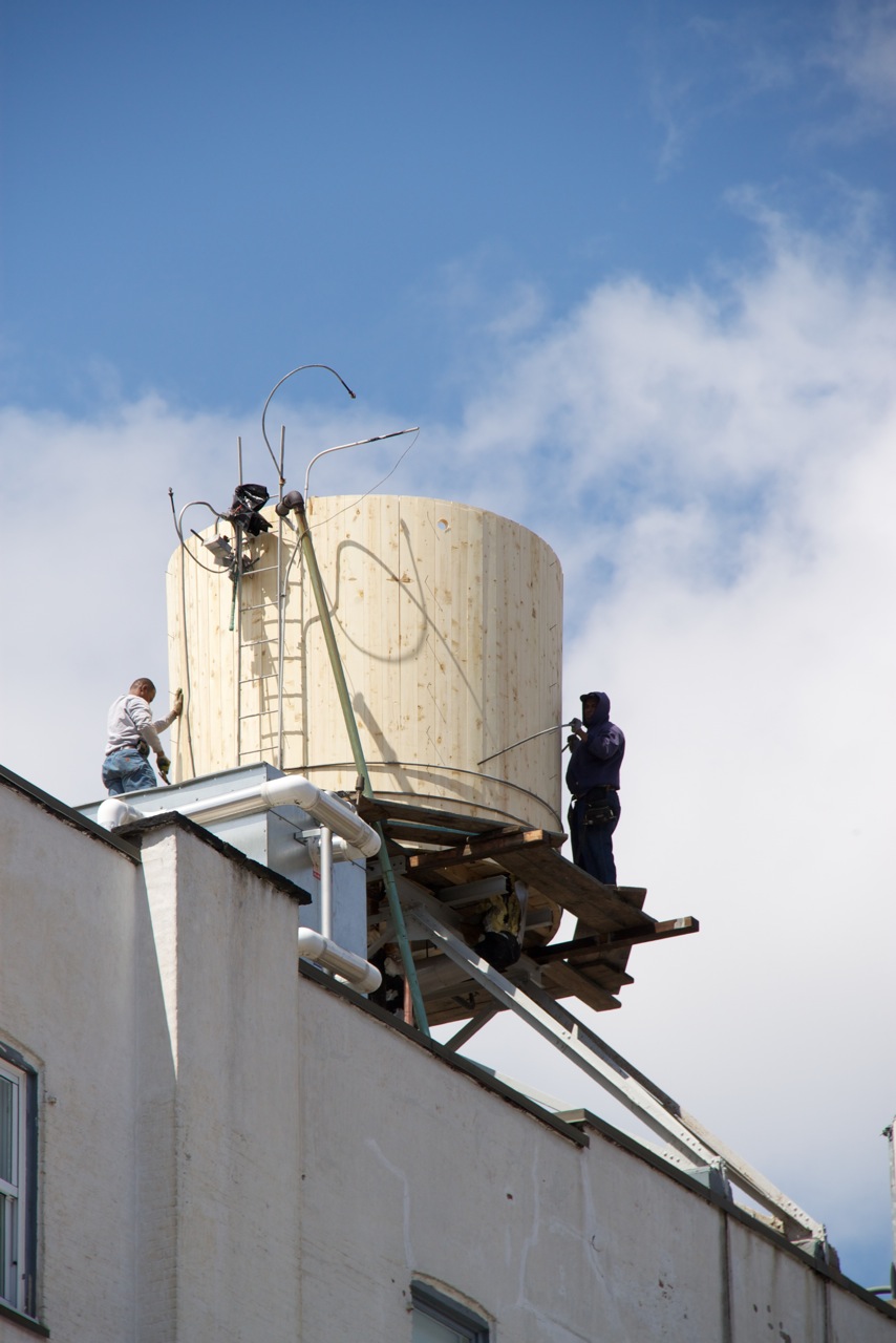 This is a re post, but I thought I’d show these water towers before they change this Spring, when artwork by acclaimed artists and New York City public school students will be wrapped around 100 rooftop water tanks across all five boroughs, celebrating the talents of established and emerging artists, and calling attention to the global water crisis.
