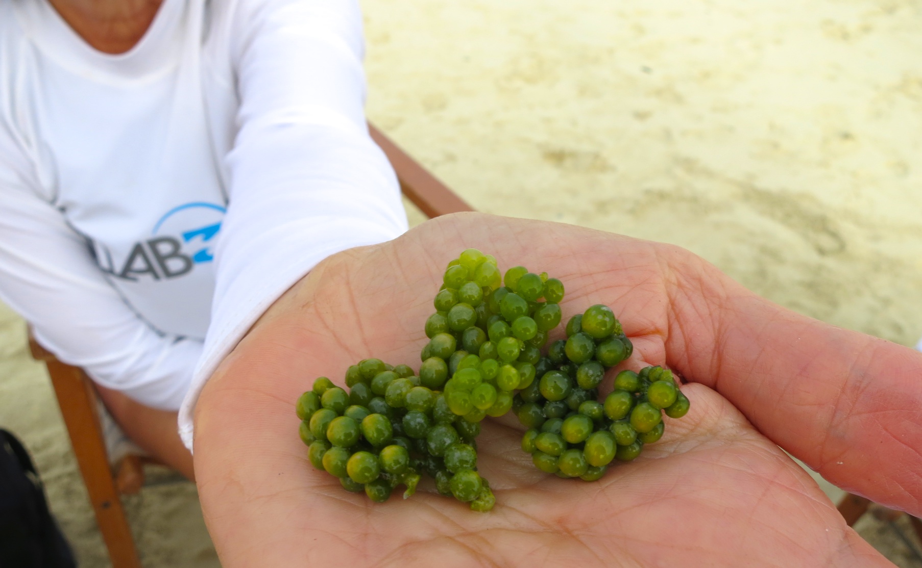 These sea grapes grow in shallow water – so deliciously salty and we put them in our salads.
