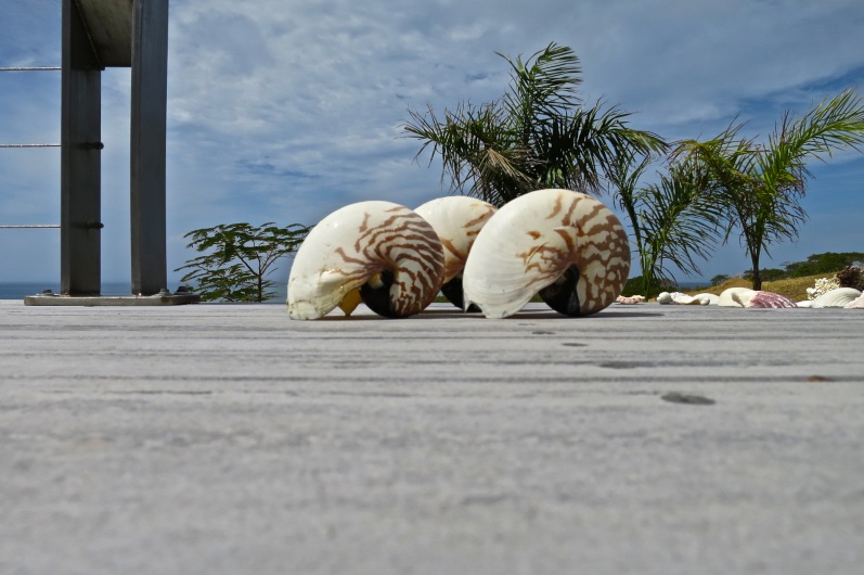 We made a collage of shells found on the beach for our hostess.