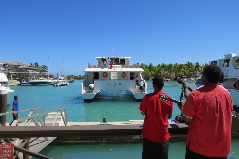 The daily ferry from Nadi where visitors were greeted by songs of welcome.