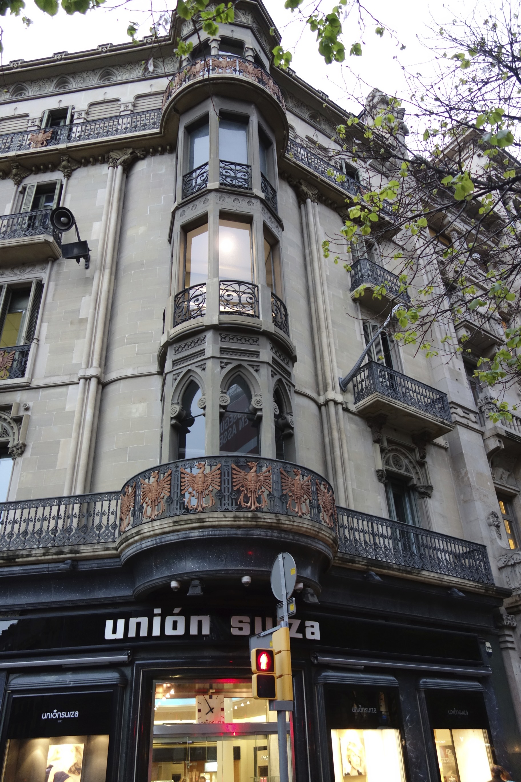 The imposing sculpture of limestone on a corner of Passeig de Gracia.